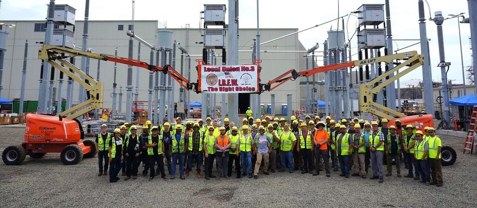 Over 100 union electricians – including ‘A’ journeypersons, apprentices, high-voltage splicers, engineers, and welders – with NYECA employer Mass Electric Construction Company are currently working on the Champlain Hudson Power Express’s converter station in Astoria, Queens. This phase in CHPE’s construction started over two years ago, and so far they have installed over 145,000 feet of conduit and 540,000 feet of cable. The CHPE transmission line will send hydropower produced in Quebec, Canada, down through New York State to a converter station in Astoria, and then a cable will connect to a substation in Long Island City. It will supply about 20% of New York City’s clean energy, reduce air pollutants, and create up to 3,000 secondary jobs.